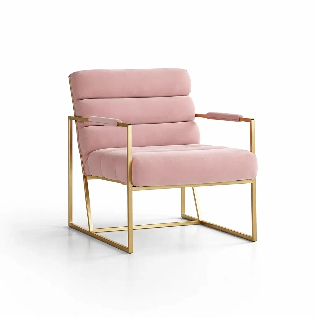 Fauteuil en velours avec cadre en métal doré