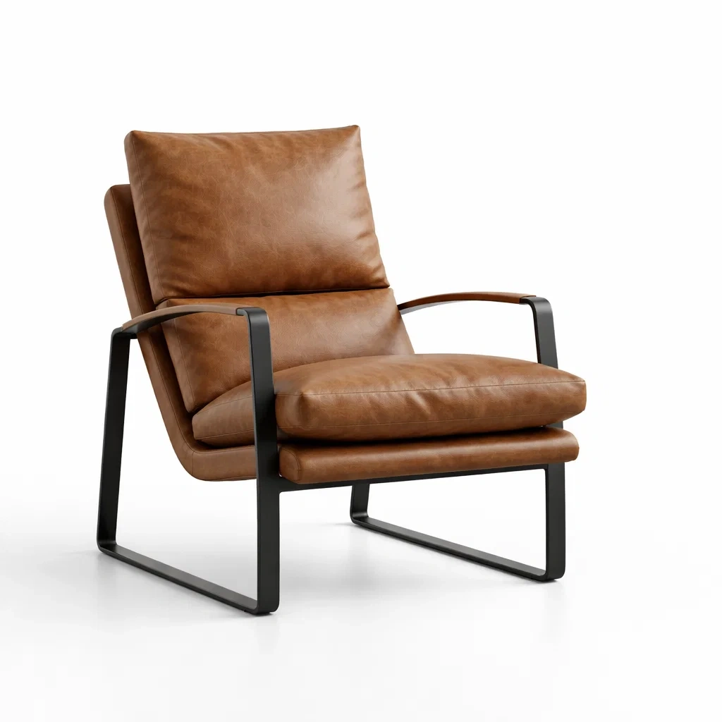 Fauteuil en cuir synthétique marron avec cadre métallique noir