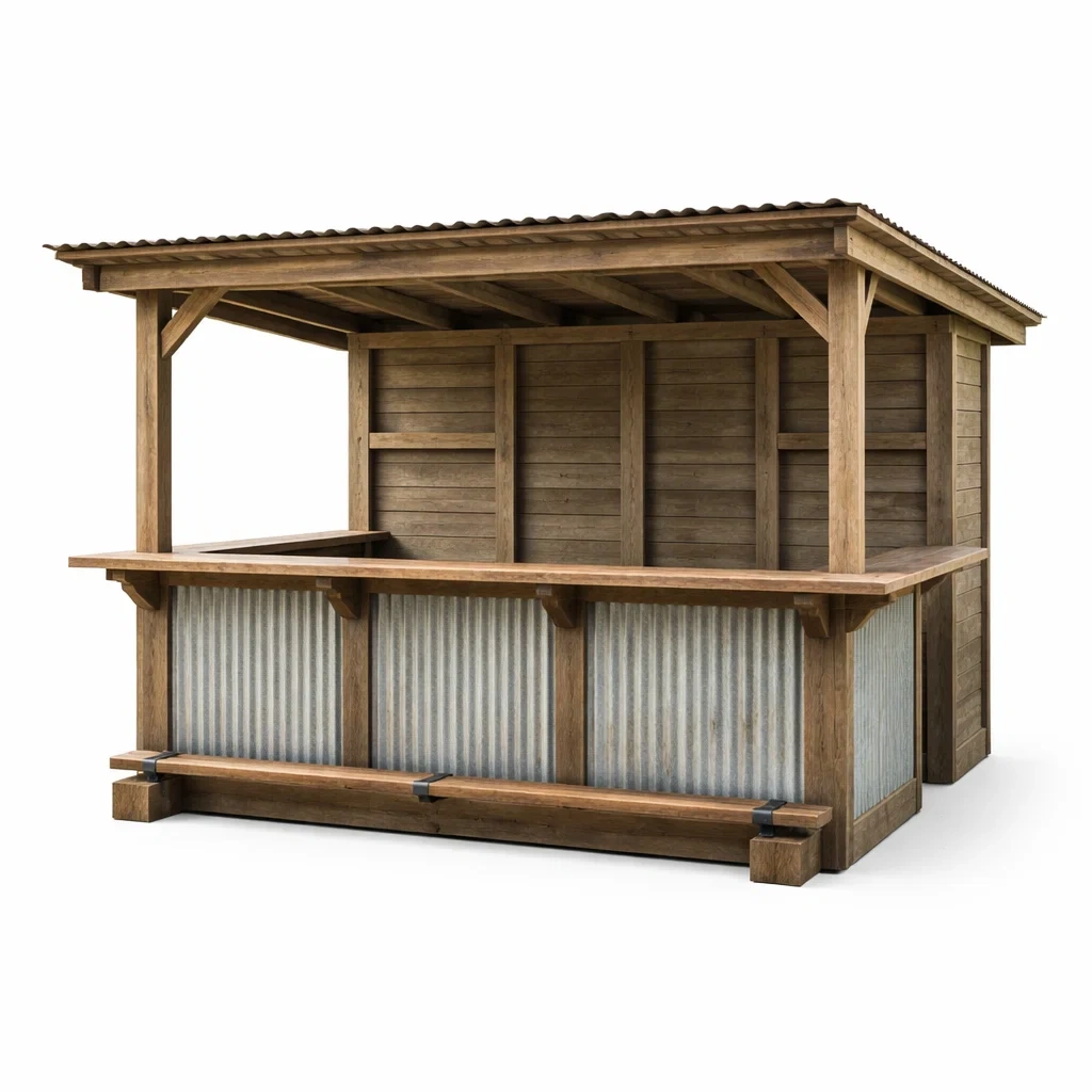 Matériau : Corps en bois massif et tôle ondulée galvanisée